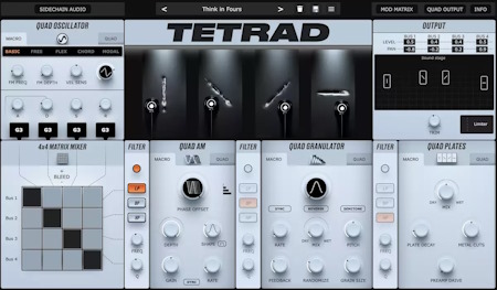 Tetrad is a hybrid instrument based on physical modelling and granular synthesis. A unique quad…